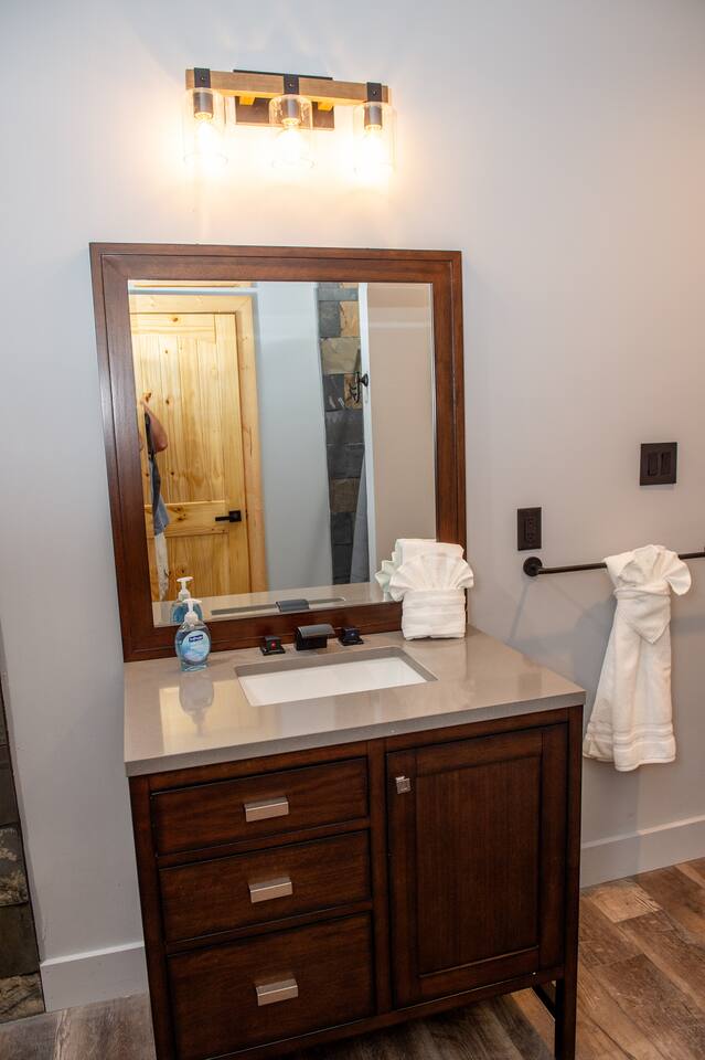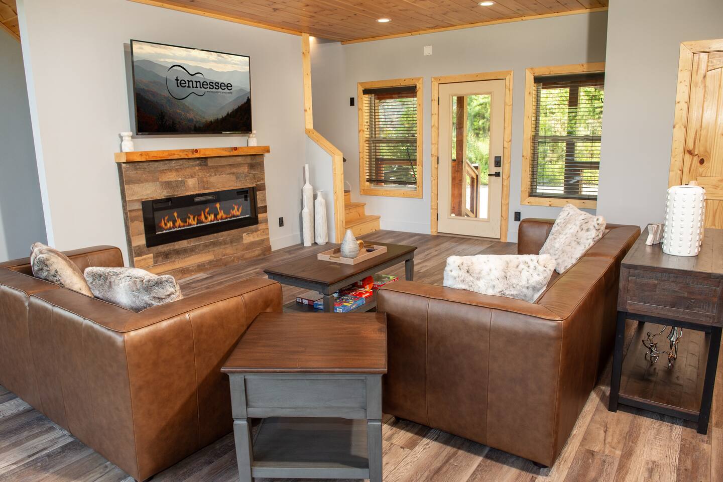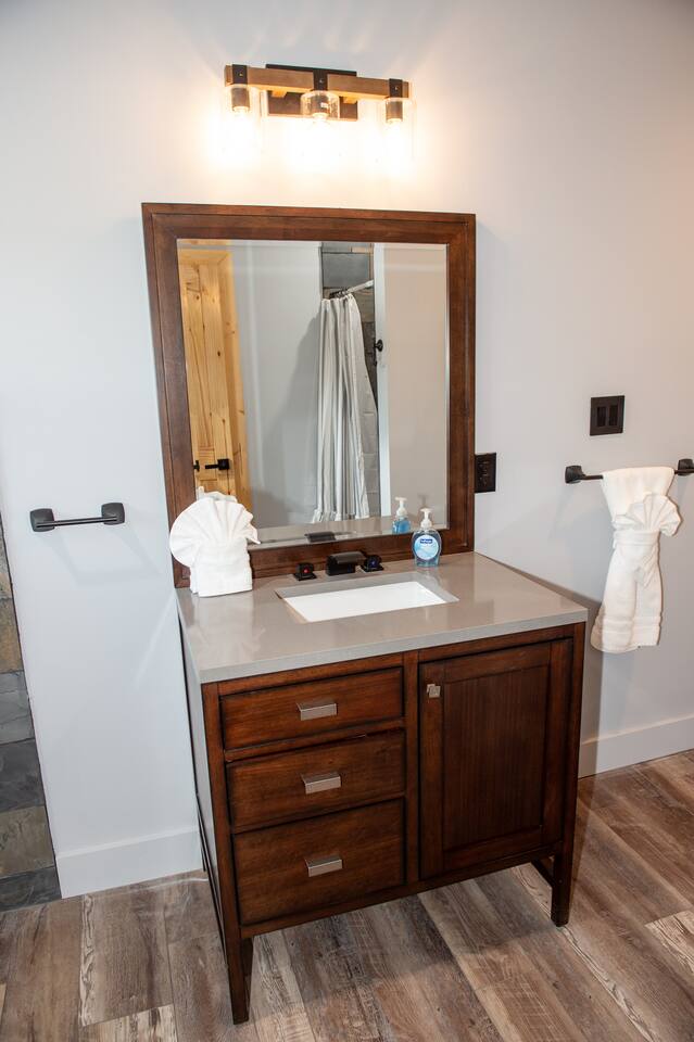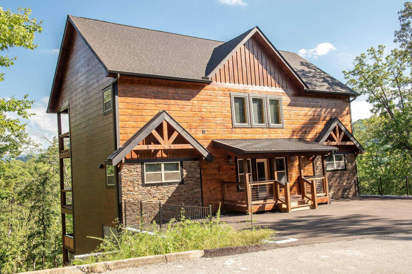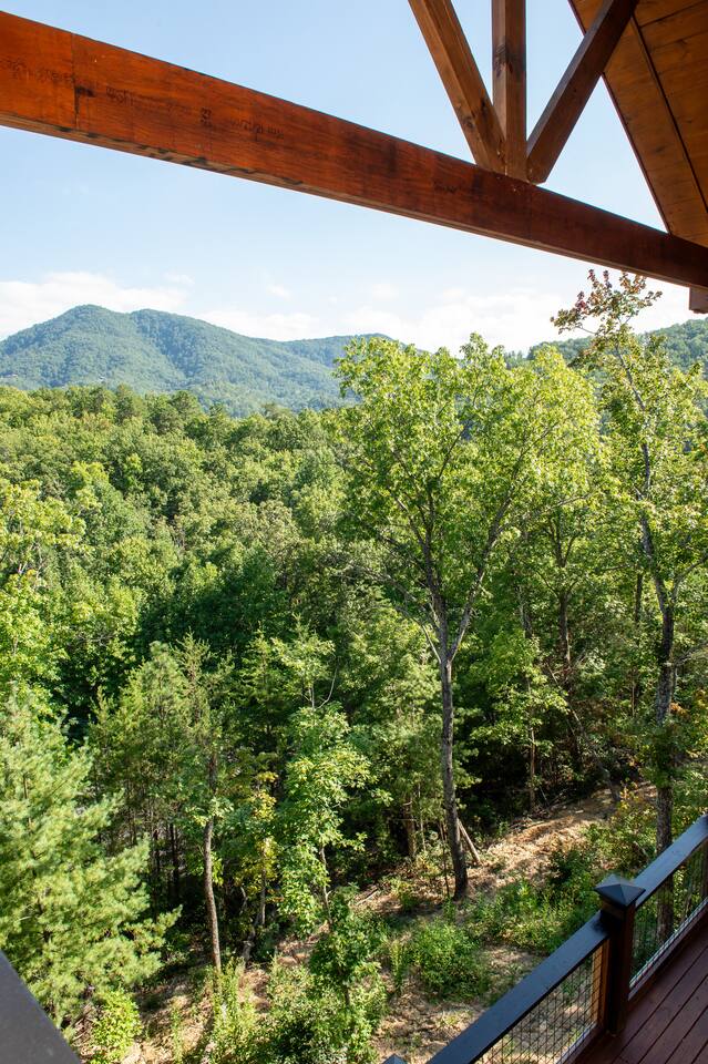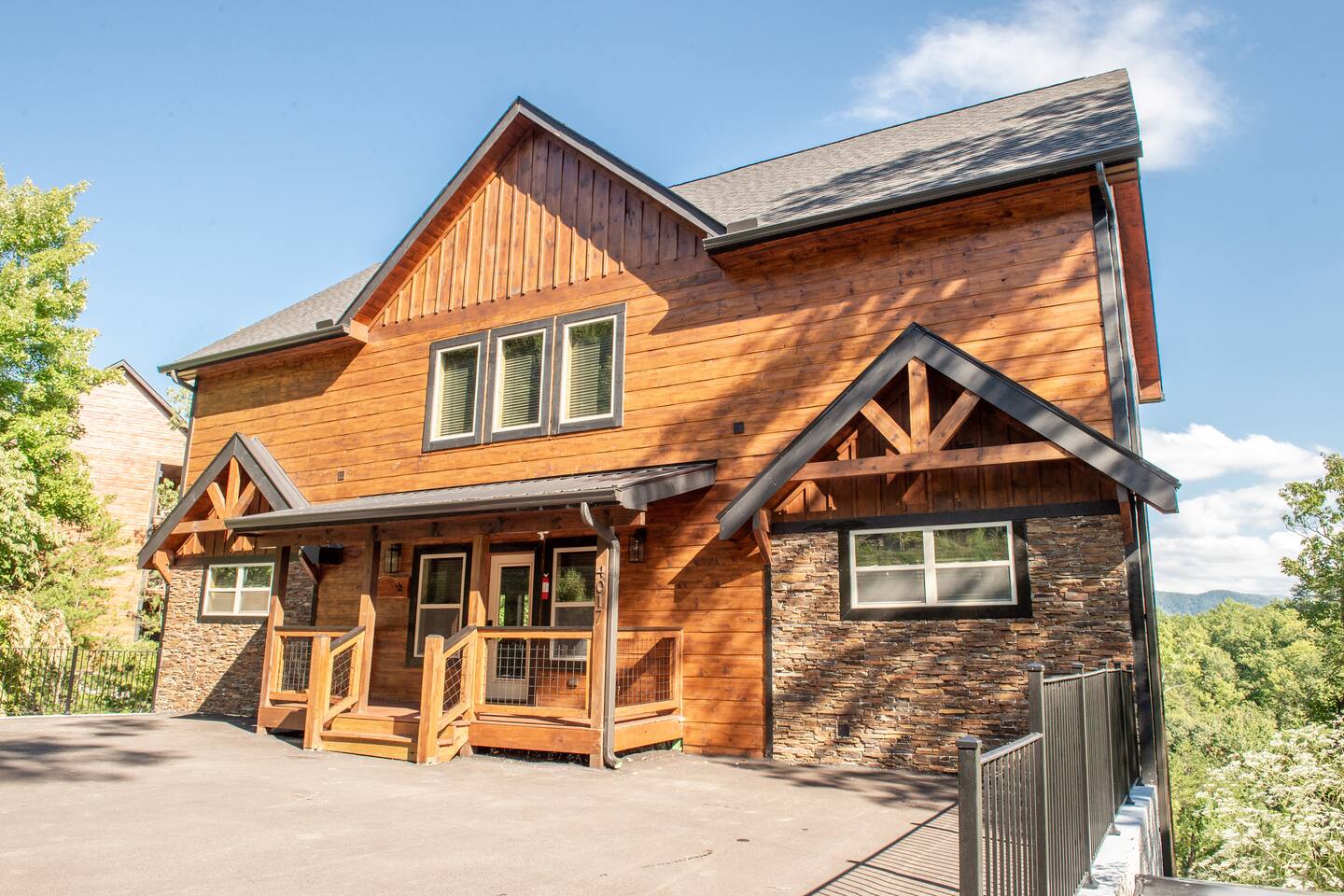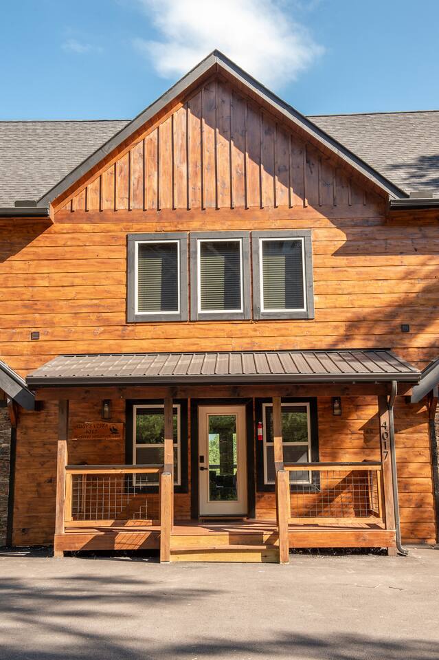 Newly built - Large Lux Cabin - 3610 sq ft - 5 bedroom - all bedrooms with private bathrooms - Mountain View’s - public community pool free entry located 1 mile - 3 outside decks - hottub - pool table - foosball table - Roku Smart TVs 50-70 in (bring your passcodes for streaming) - large spacious kitchen, well equipped - Keurig - front porch - ample parking easily fit 6 vehicles - street side parking available - charcoal BBQ grill