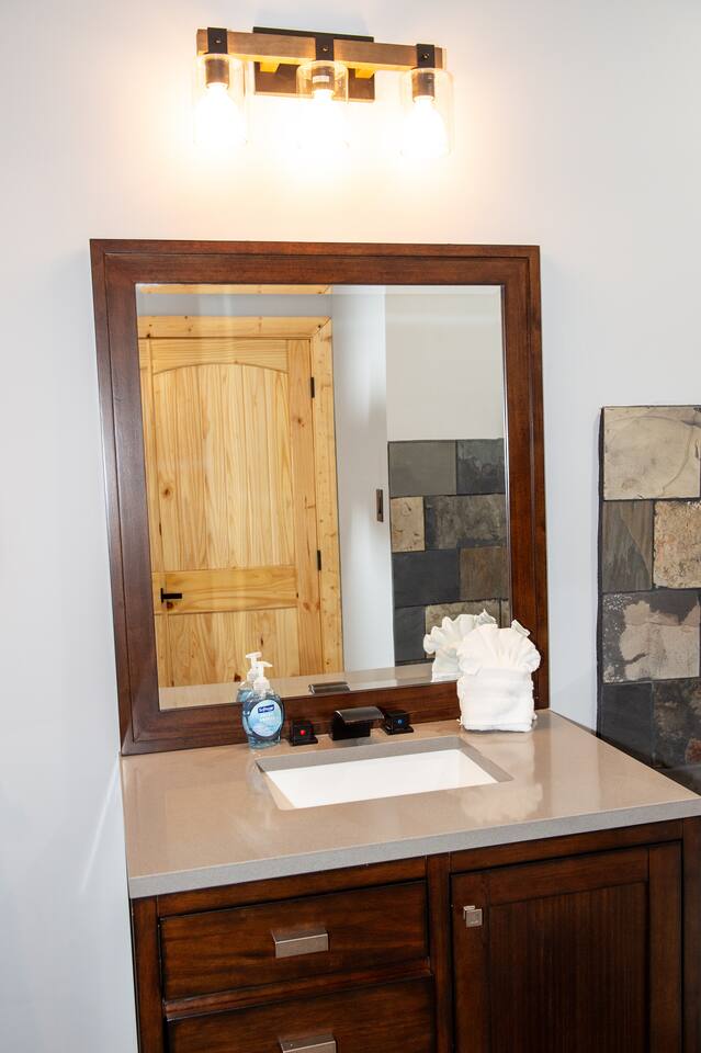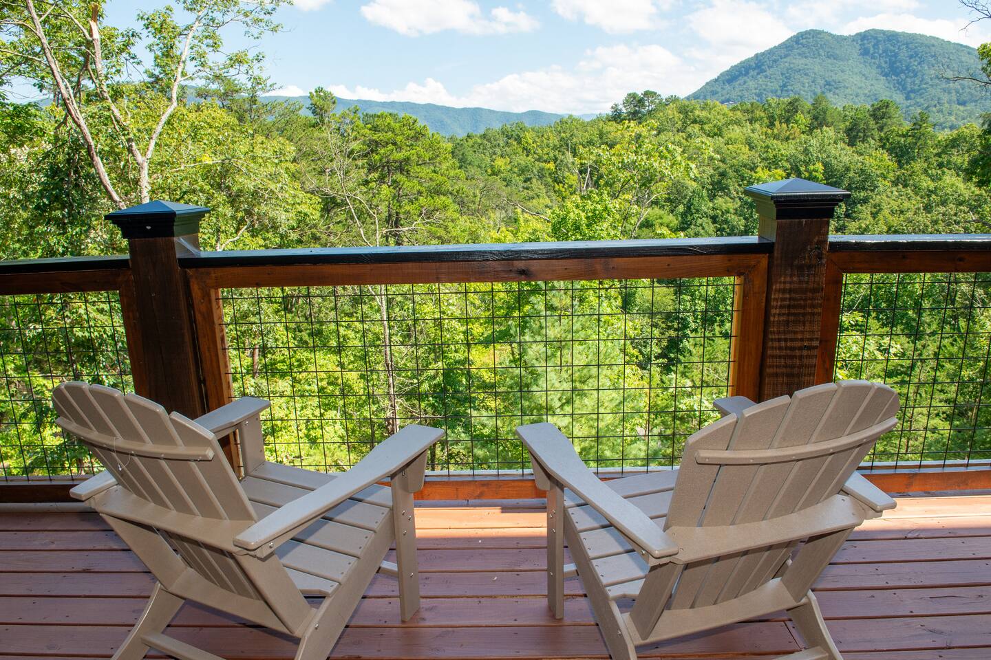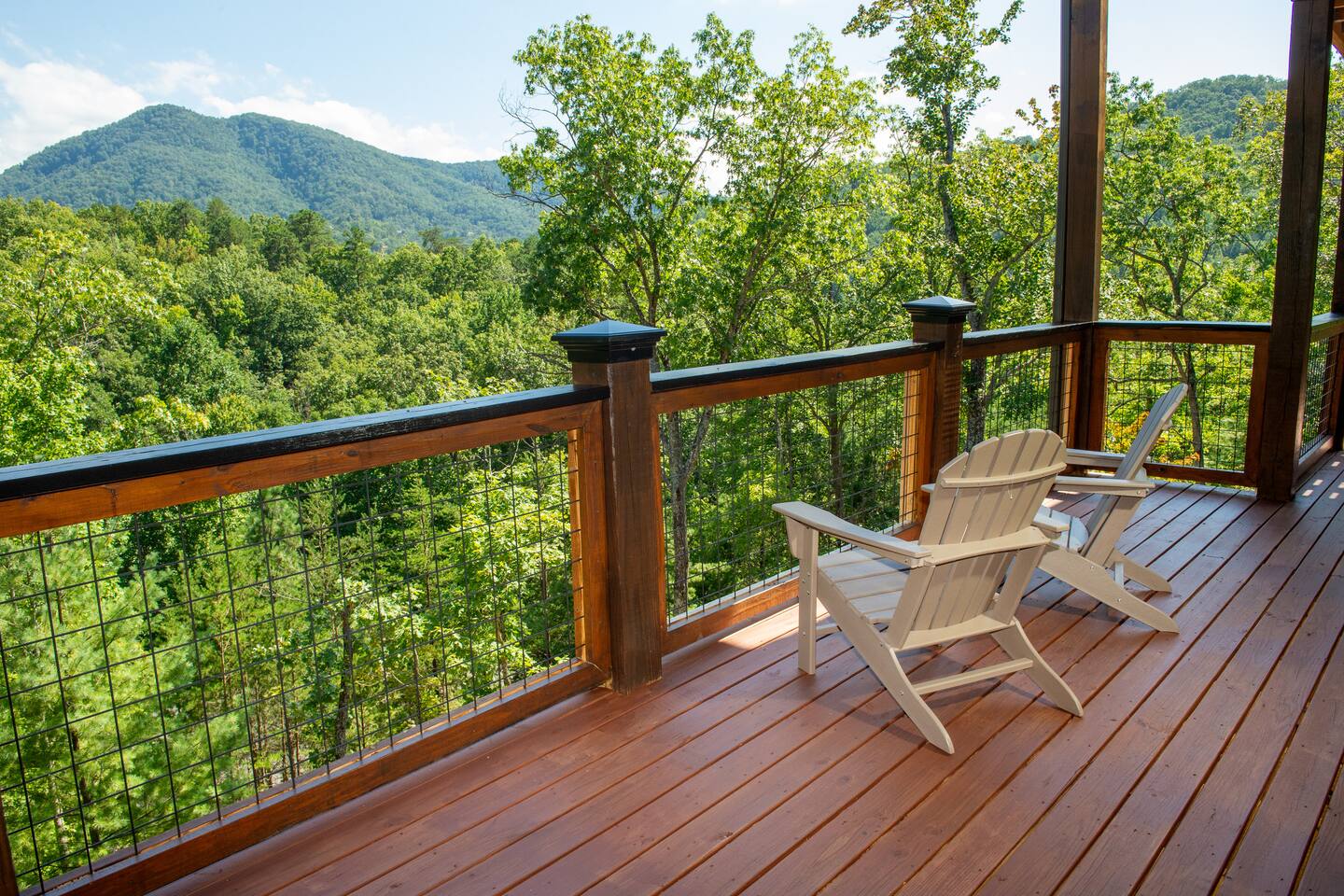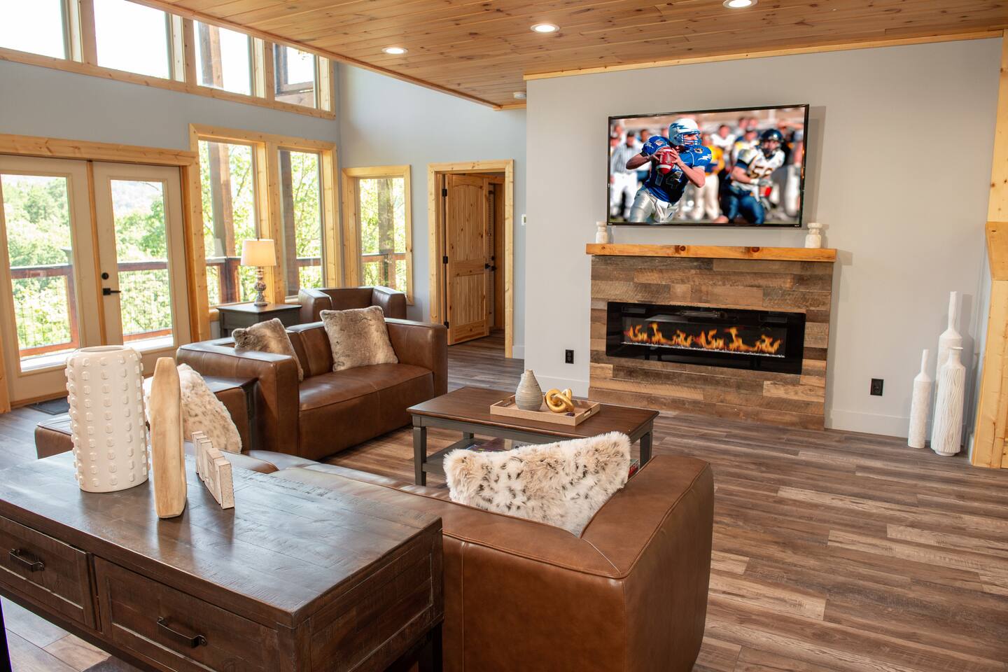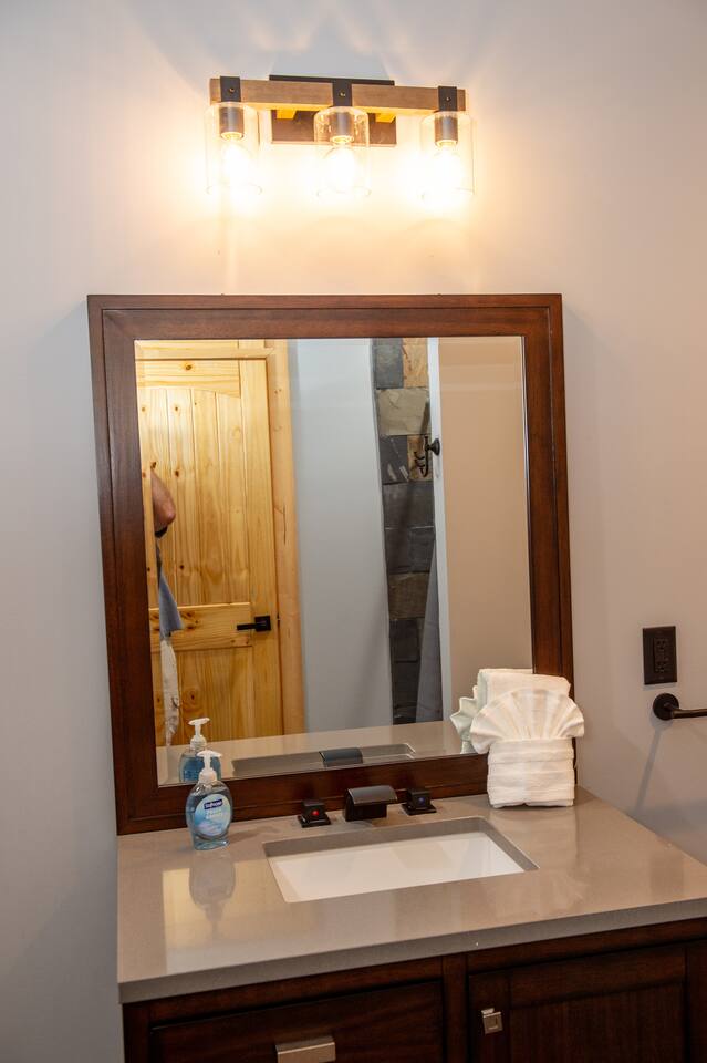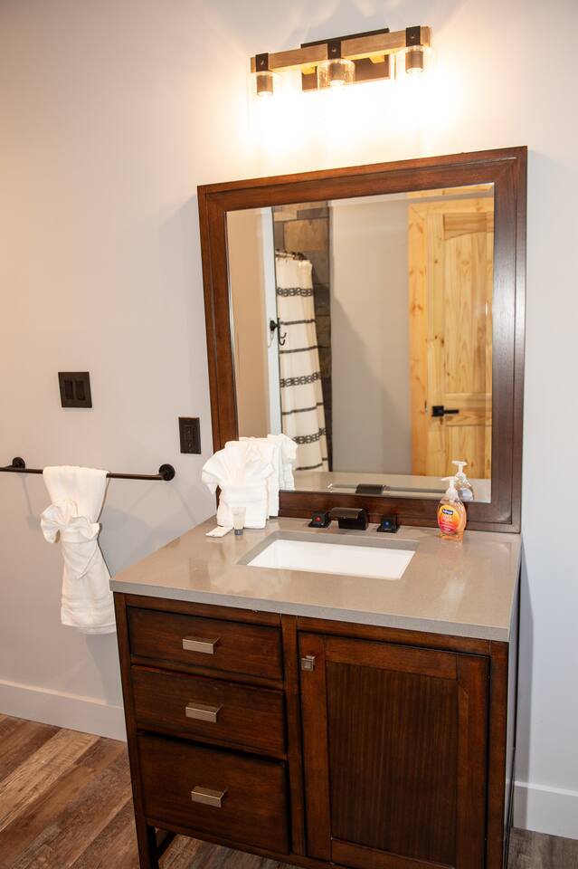 Newly built - Large Lux Cabin - 3610 sq ft - 5 bedroom - all bedrooms with private bathrooms - Mountain View’s - public community pool free entry located 1 mile - 3 outside decks - hottub - pool table - foosball table - Roku Smart TVs 50-70 in (bring your passcodes for streaming) - large spacious kitchen, well equipped - Keurig - front porch - ample parking easily fit 6 vehicles - street side parking available - charcoal BBQ grill