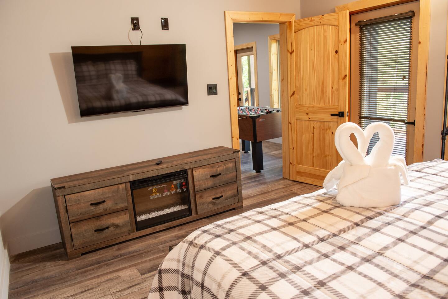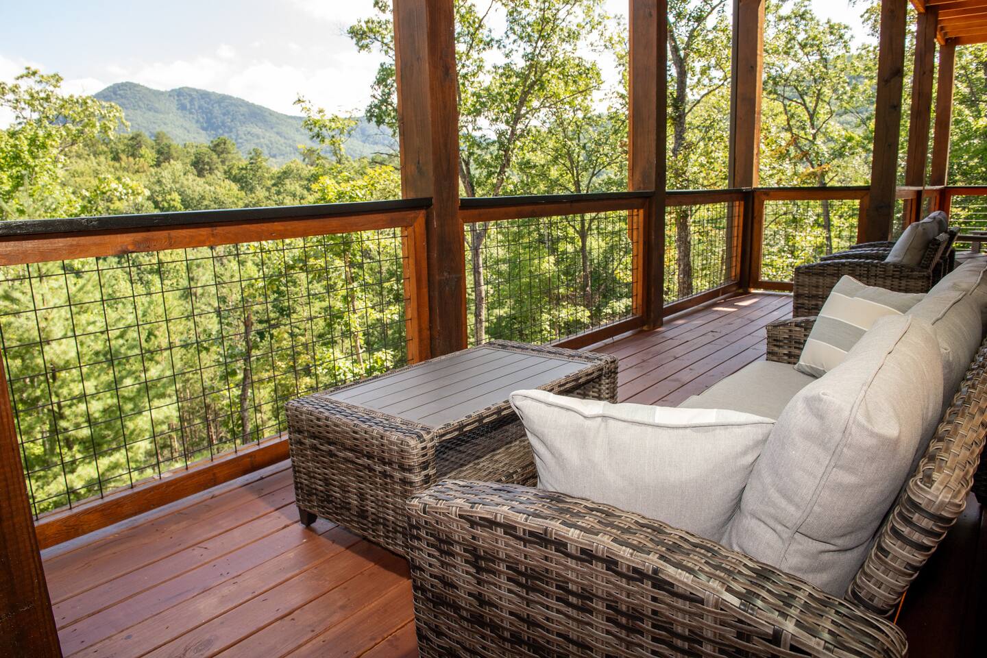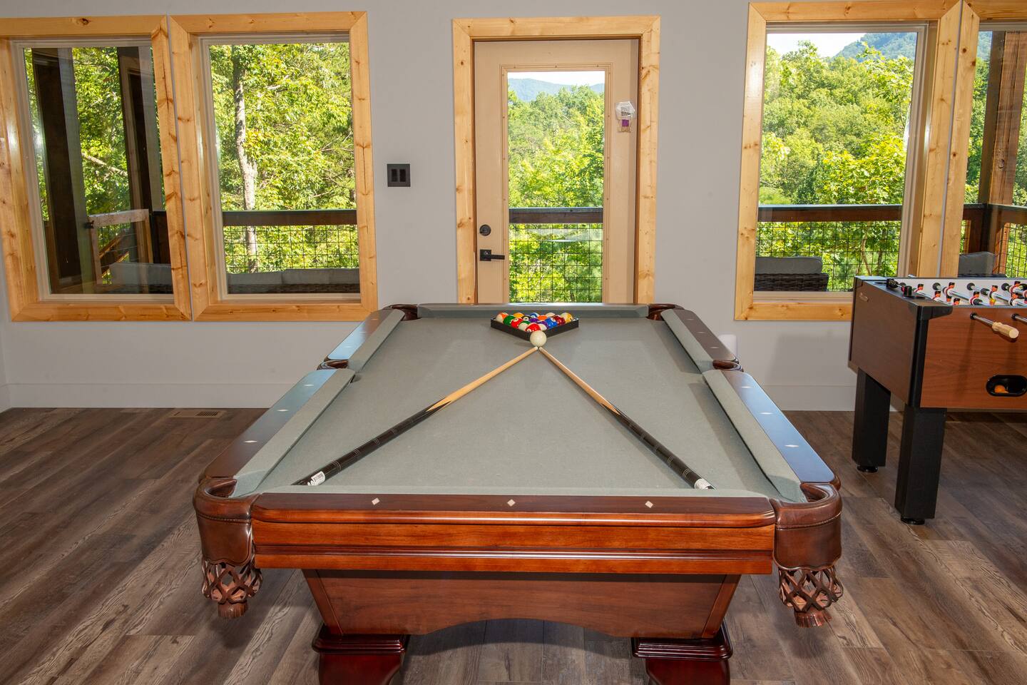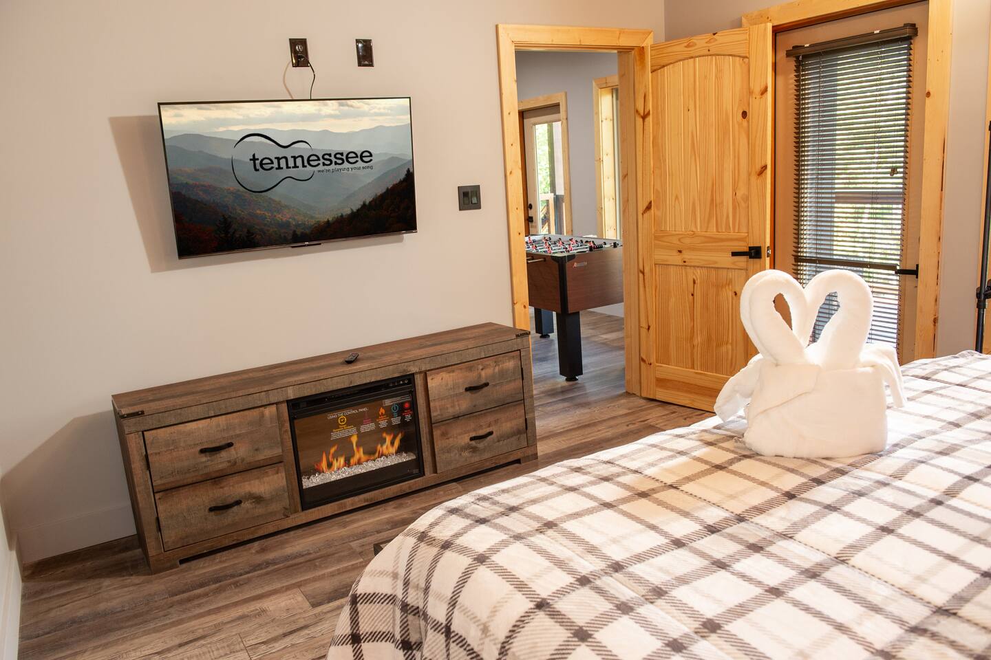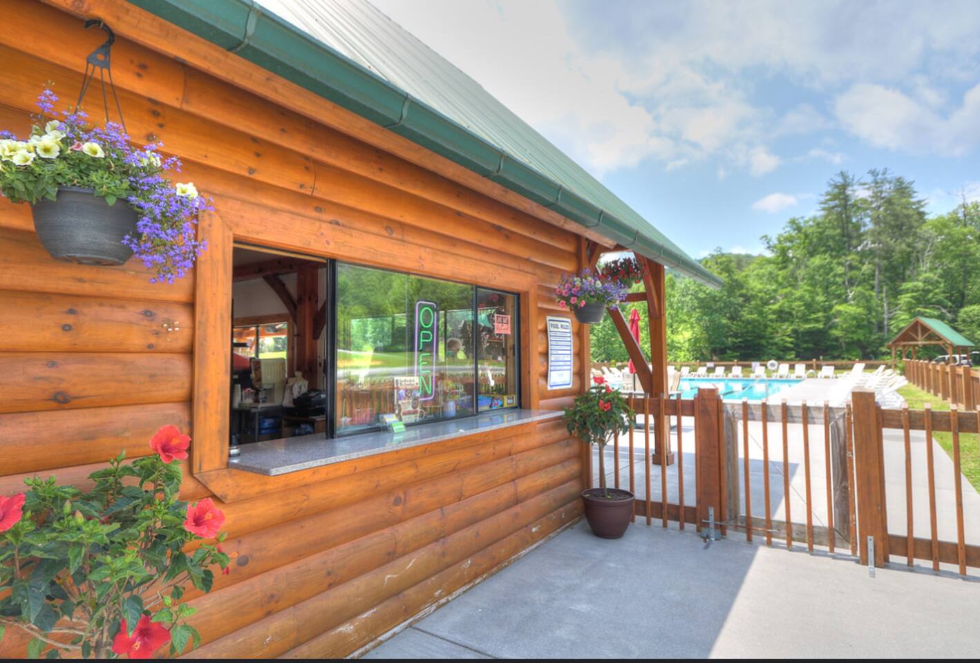 Newly built - Large Lux Cabin - 3610 sq ft - 5 bedroom - all bedrooms with private bathrooms - Mountain View’s - public community pool free entry located 1 mile - 3 outside decks - hottub - pool table - foosball table - Roku Smart TVs 50-70 in (bring your passcodes for streaming) - large spacious kitchen, well equipped - Keurig - front porch - ample parking easily fit 6 vehicles - street side parking available - charcoal BBQ grill