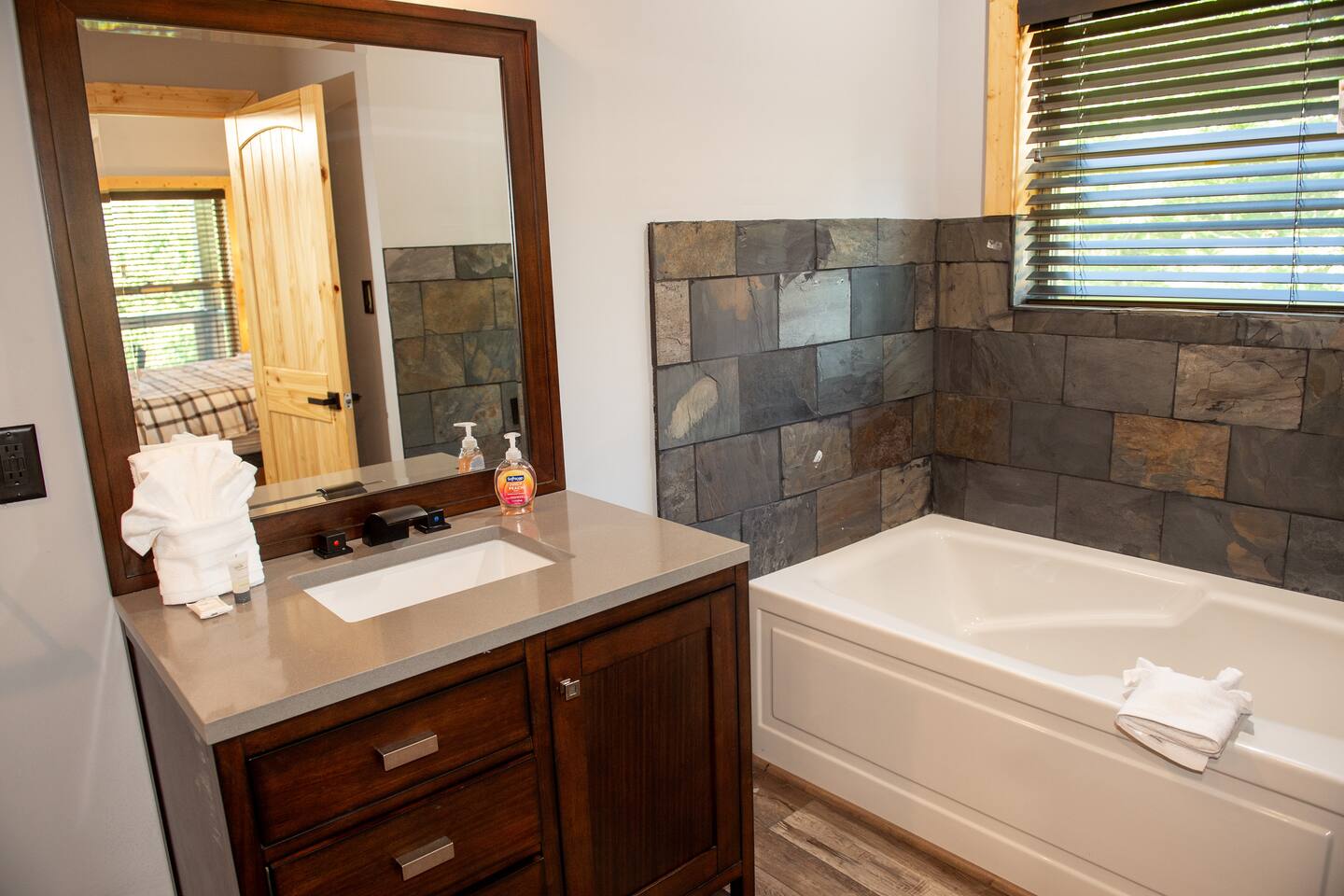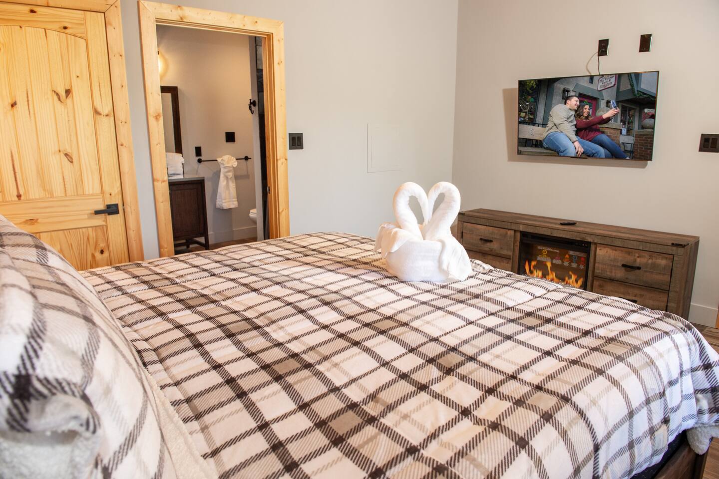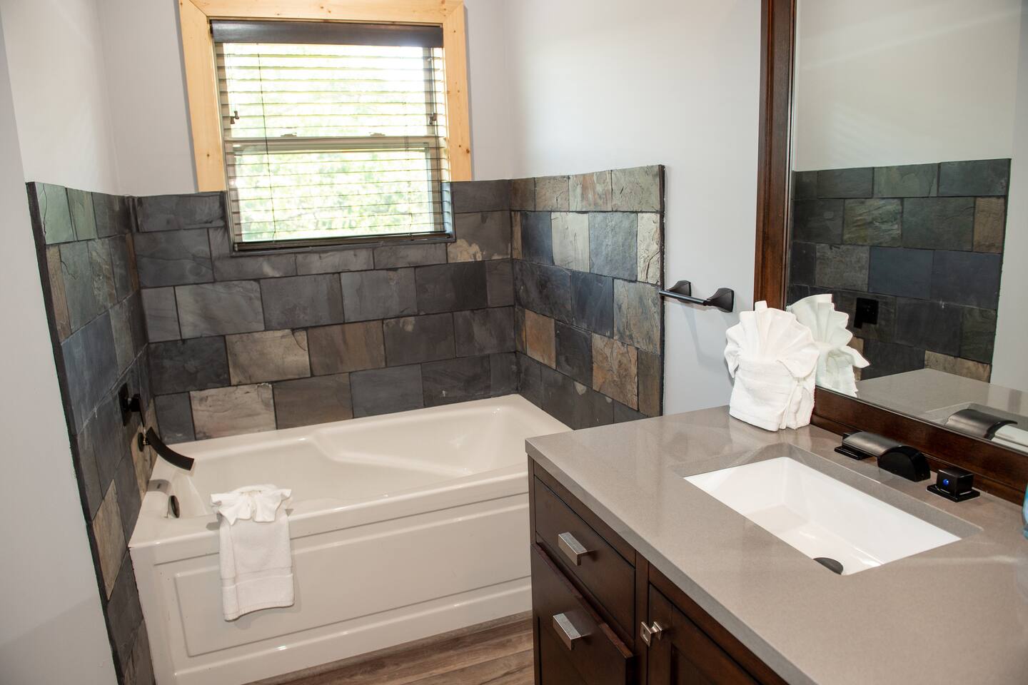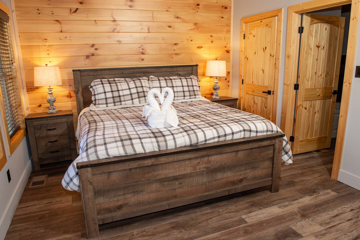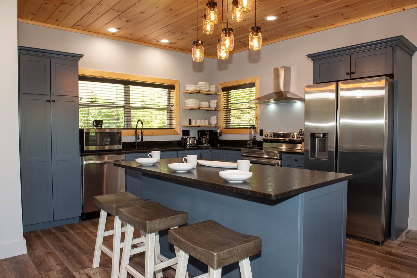 Newly built - Large Lux Cabin - 3610 sq ft - 5 bedroom - all bedrooms with private bathrooms - Mountain View’s - public community pool free entry located 1 mile - 3 outside decks - hottub - pool table - foosball table - Roku Smart TVs 50-70 in (bring your passcodes for streaming) - large spacious kitchen, well equipped - Keurig - front porch - ample parking easily fit 6 vehicles - street side parking available - charcoal BBQ grill