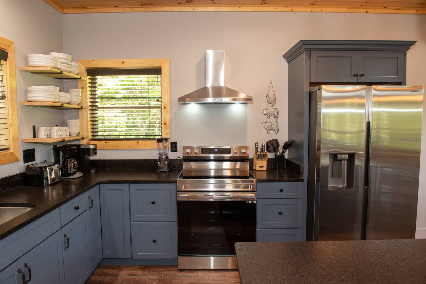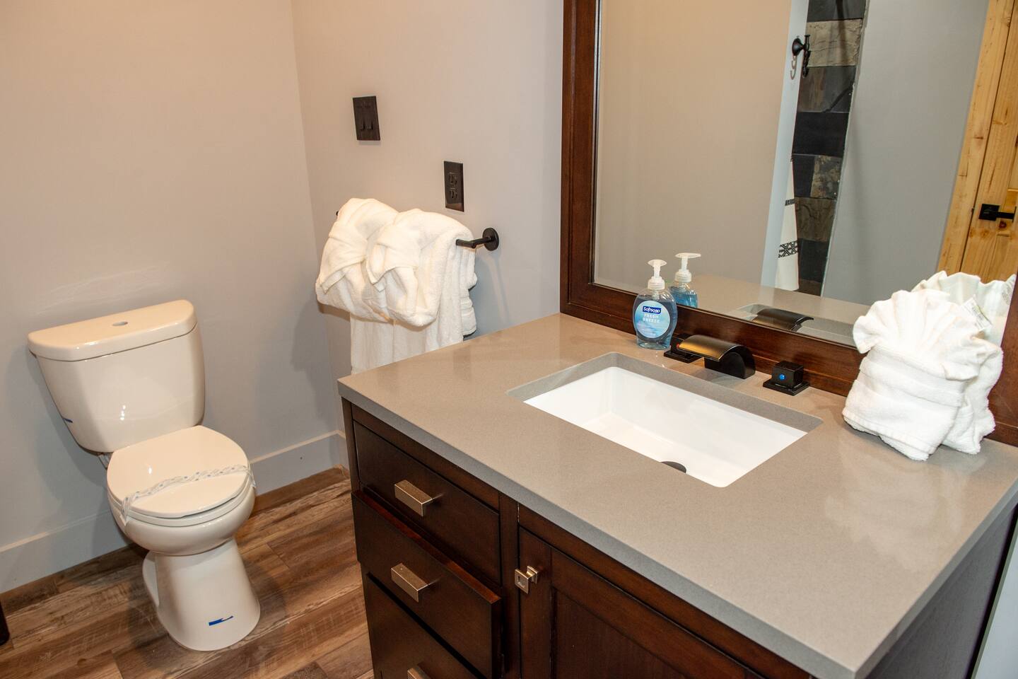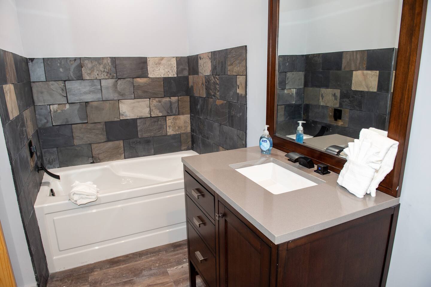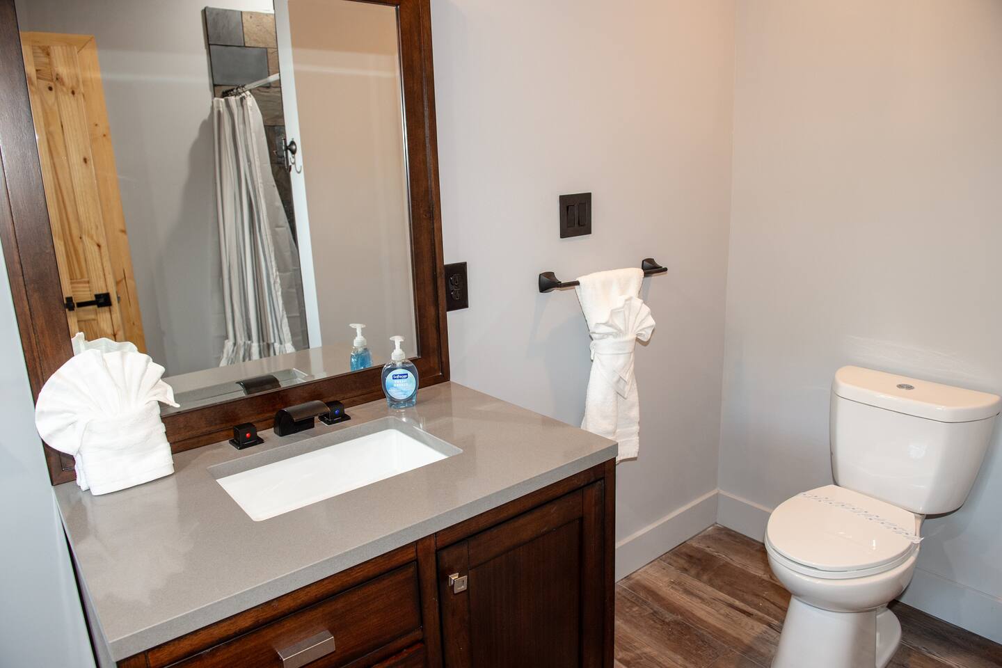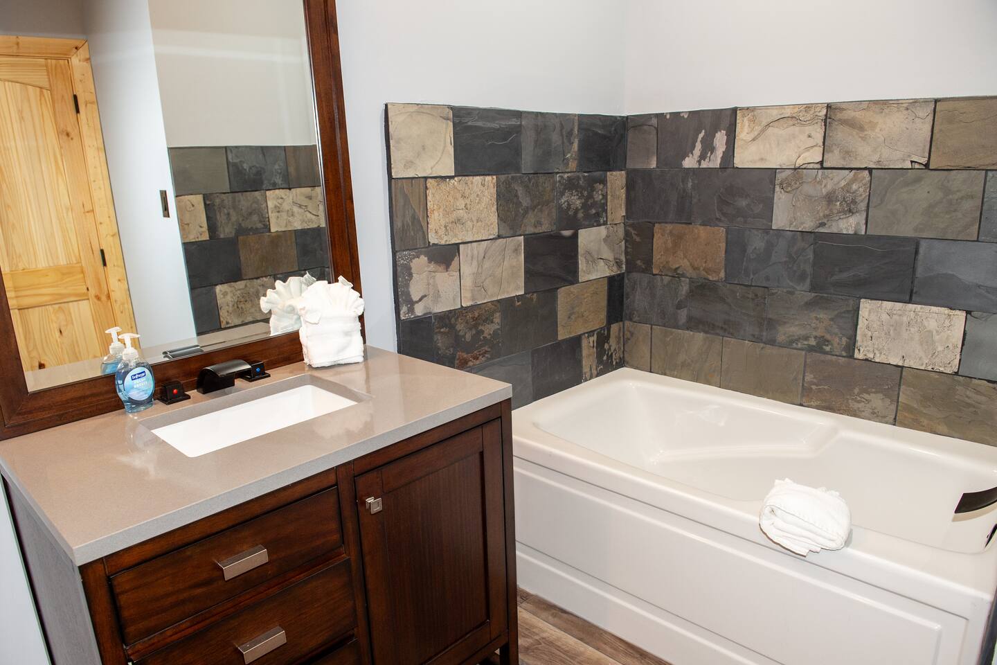 Newly built - Large Lux Cabin - 3610 sq ft - 5 bedroom - all bedrooms with private bathrooms - Mountain View’s - public community pool free entry located 1 mile - 3 outside decks - hottub - pool table - foosball table - Roku Smart TVs 50-70 in (bring your passcodes for streaming) - large spacious kitchen, well equipped - Keurig - front porch - ample parking easily fit 6 vehicles - street side parking available - charcoal BBQ grill